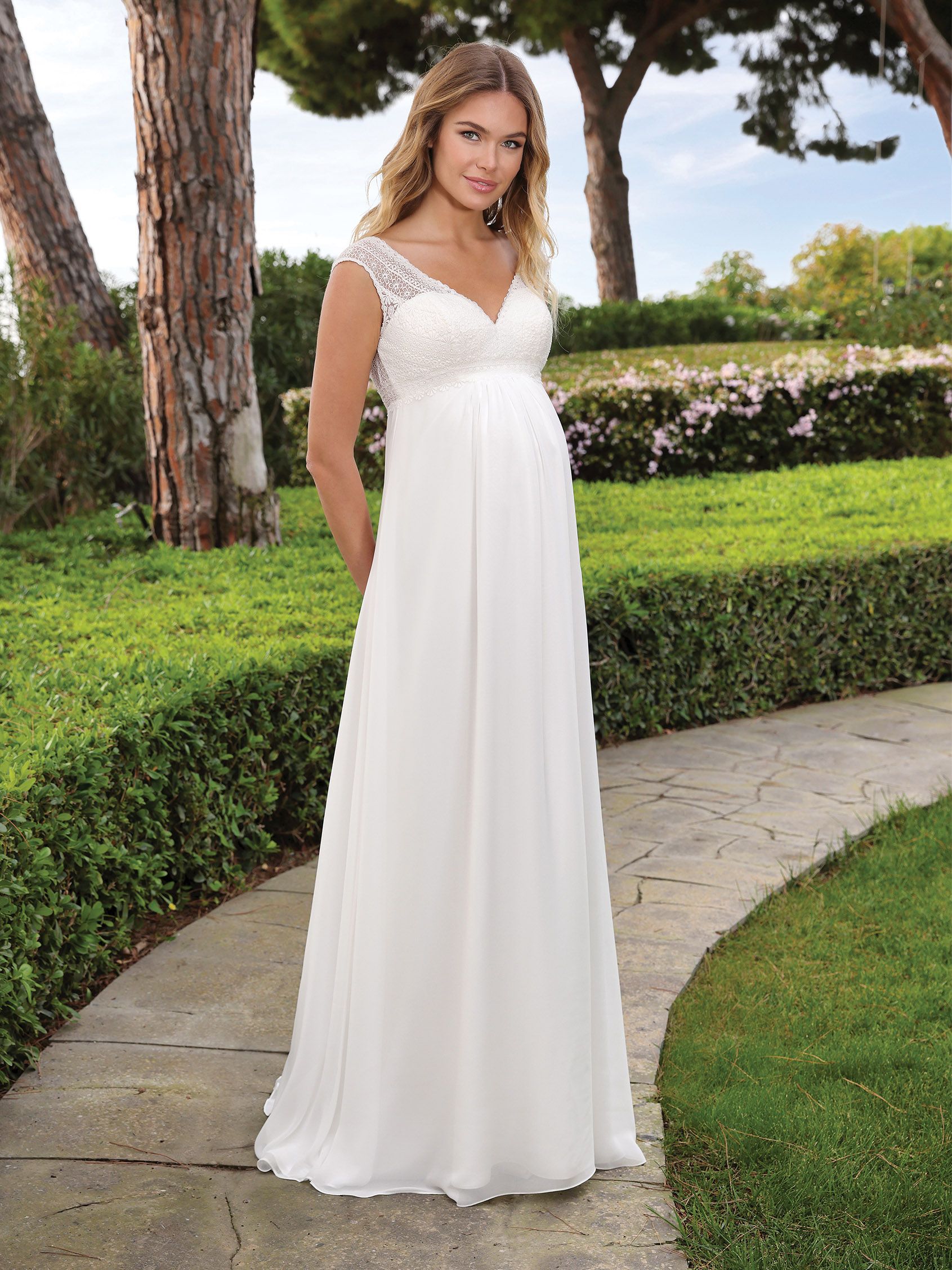 Amalinder – Umstandsbrautkleid mit Boho-Spitze und breiten Trägern